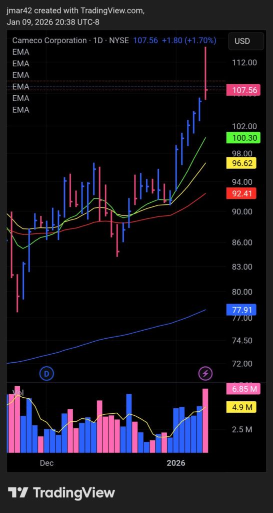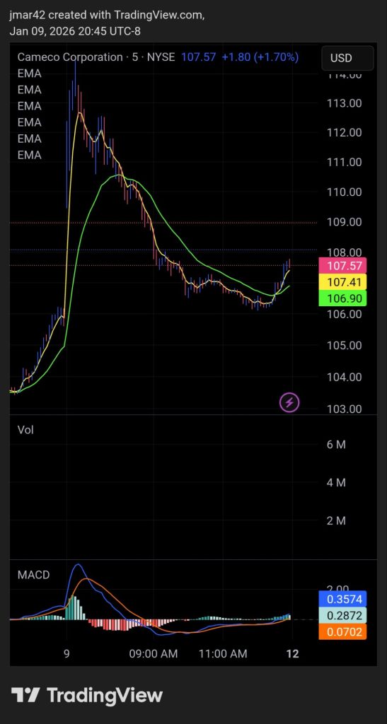 High probability setups are typically obvious at the open because they typically are gonna be trading very actively pre market. Most likely a BGU will happen because of all that premarket volume. Simetimes it can be near a key area and/or base. In other cases a BGU can be a DTSS. A DTSS would basically be a failed BGU coming in from the left side low. One would think to out right buy the BGU at the open. But, because of the volatility with the algos, its always good to wait maybe 30 min or look for a low range and/or 6/20 turn. An example CCJ Cameco. By waiting 30 minutes you can see more clearly what direction this is going. Also, the MACD never crosses back until almost by the close.